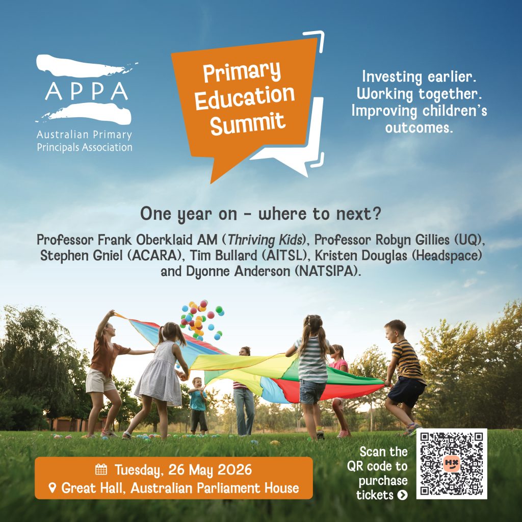 The 2026 APPA Primary Education Summit will be held on Tuesday, 26 May 2026, in the Great Hall at Parliament House, Canberra.
